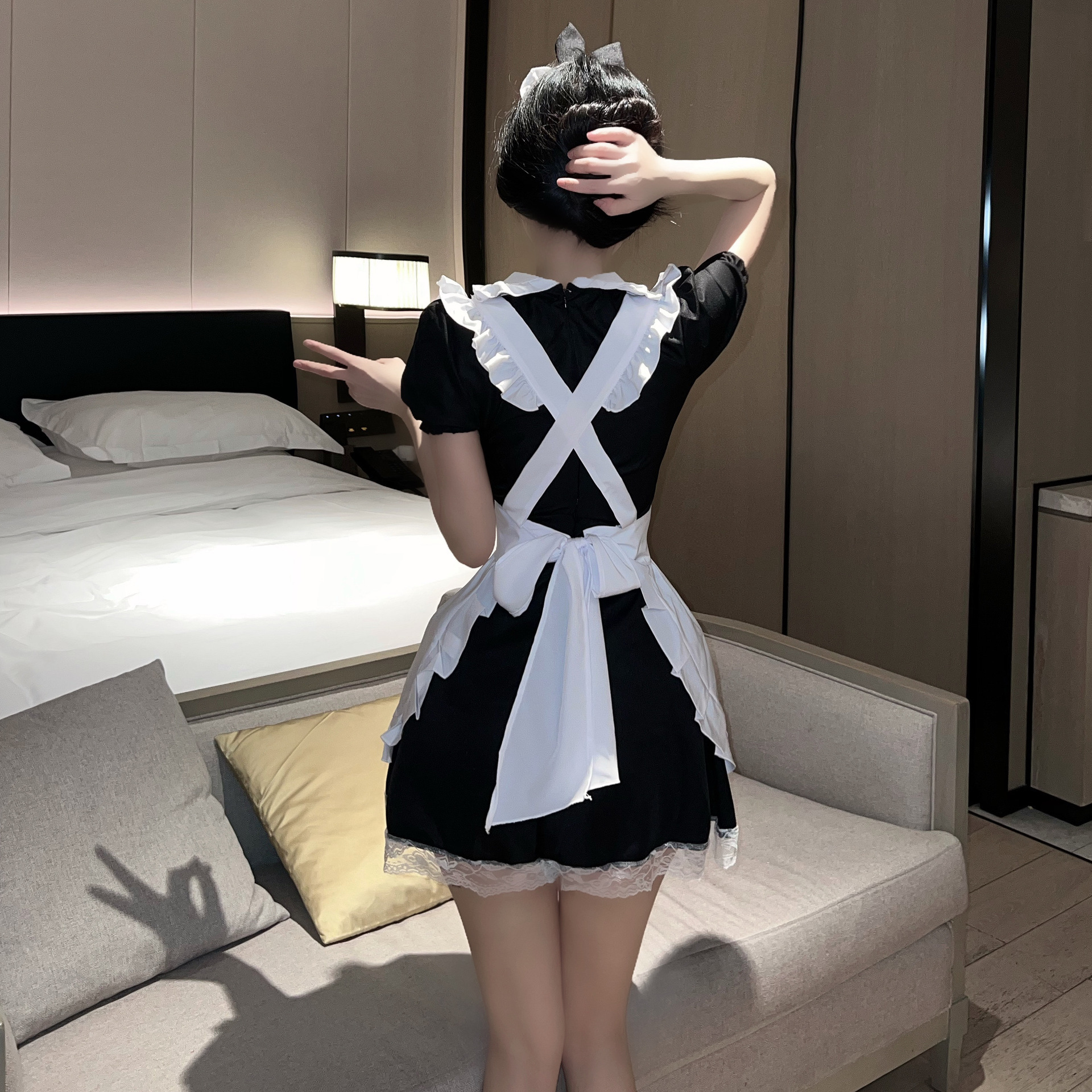 sexy kostum maid cosplay sama bando sexy dress wanita