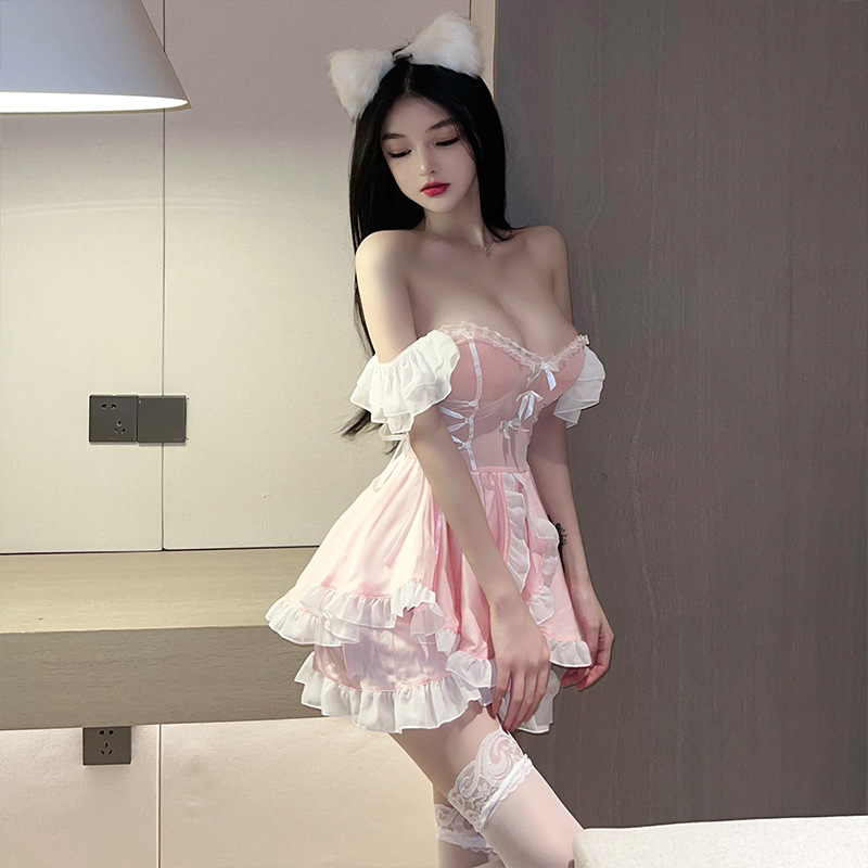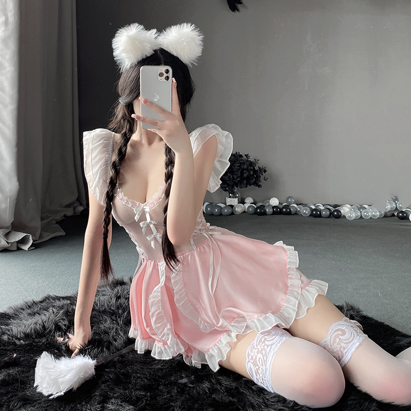 Home Lingerie Costum Cospaly Lingerie Maid Cute Pink dress Sexy Kostum Seragam